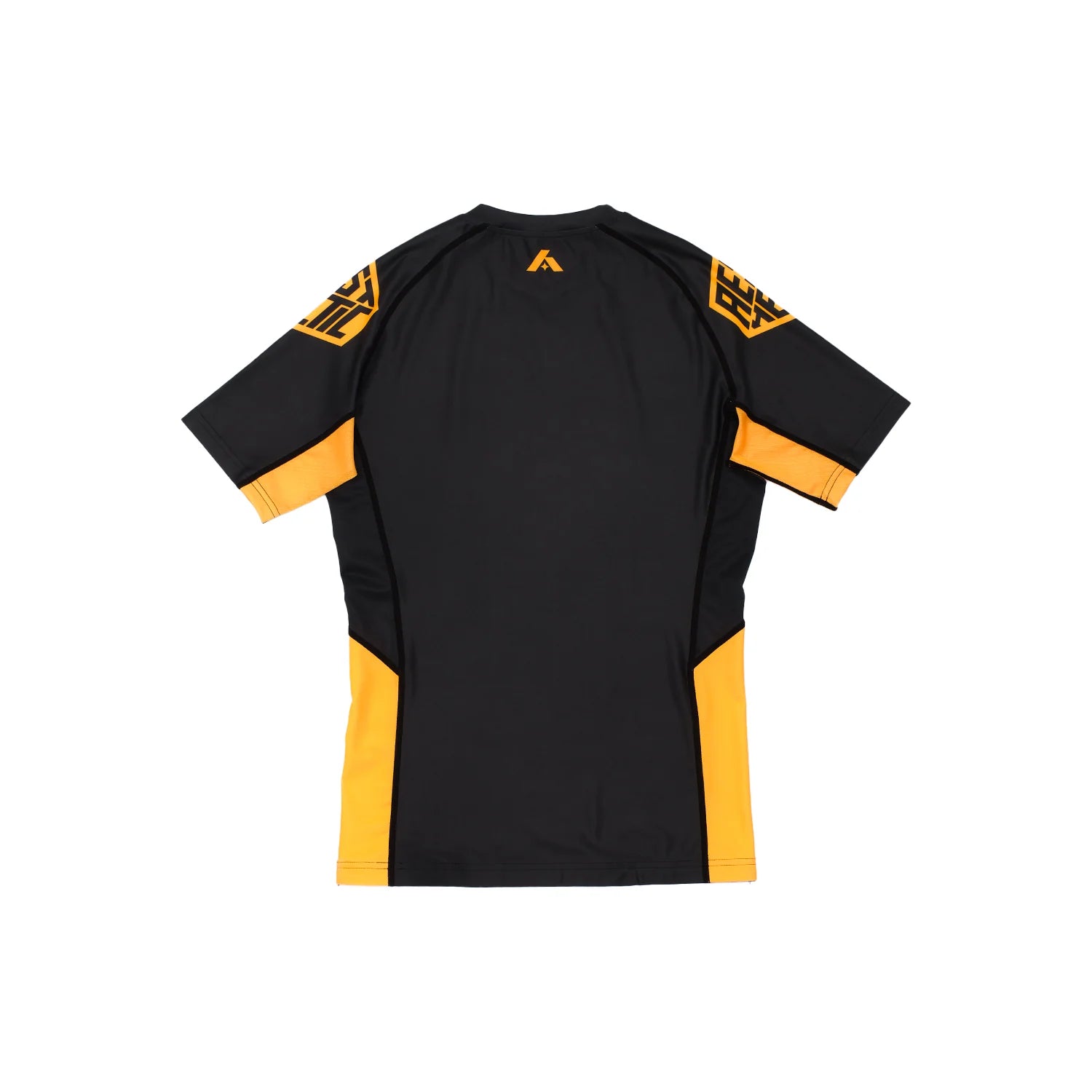 蛍光オレンジとブラックの対照的な切り替えデザインに、長めのアンダーアームメッシュパネルが特徴。